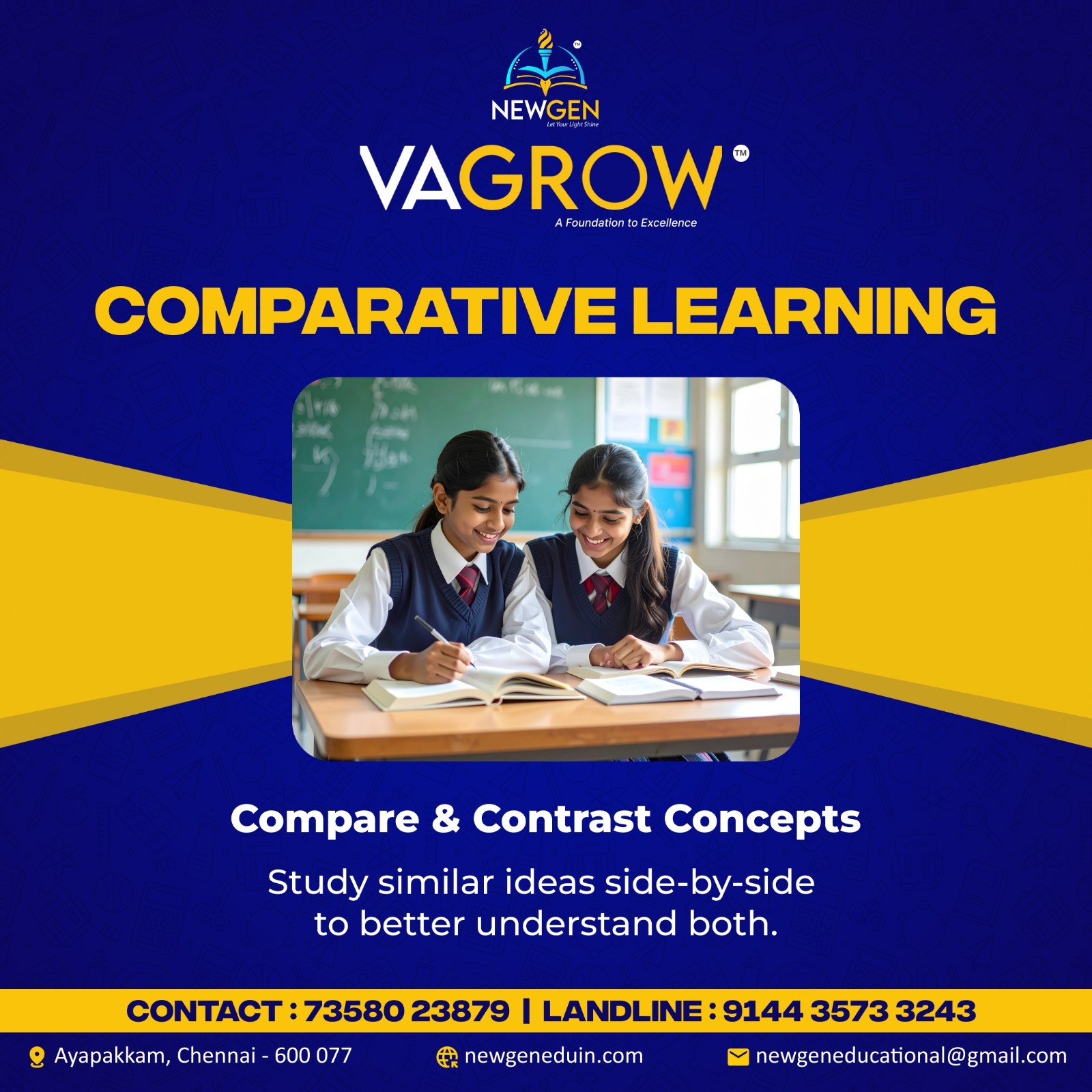 Comparative Learning π NewGen Education Institute β Empowering Students from 4th to 12th Grade! We offer comprehensive coaching to help students achieve academic excellence and prepare for competitive exams like NEET and JEE. Our programs are designed to build strong foundations, boost confidence, and unlock each studentβs full potential. π Our Courses πΉ Foundation Program (4th to 8th Std) Strengthen core concepts in subjects like Math, Science, and English with engaging, concept-based teaching. πΉ Advanced Coaching (9th to 12th Std) Score high in board exams (CBSE & State Board) through structured lessons, strategic test prep, and expert mentoring. πΉ NEET & JEE Preparation Crack medical and engineering entrance exams with advanced coaching, mock tests, and personalized guidance. π Why Choose NewGen? β Expert & Experienced Faculty β Small Batches for Personalized Attention β Affordable Fees with Maximum Value β Regular Tests & Performance Analysis β Individual Doubt-Clearing Sessions β Motivation & Career Guidance β Parent-Teacher Updates & Student Monitoring π Located in Ayapakkam, Chennai π Contact Us π Website: newgeneduin.com π Call: 73580 23879 βοΈ Landline: 91443 5733243 π Follow & Support Us Online! #NewgenEducationInstitute #NEETPreparation #JEEPreparation #CoachingCenter #AcademicSuccess #CBSE #StateBoard #TuitionClasses #9thStandard #10thStandard #11thStandard #12thStandard #StudentSupport #EducationInChennai #SchoolCoaching #StudySmart #KnowledgeIsPower