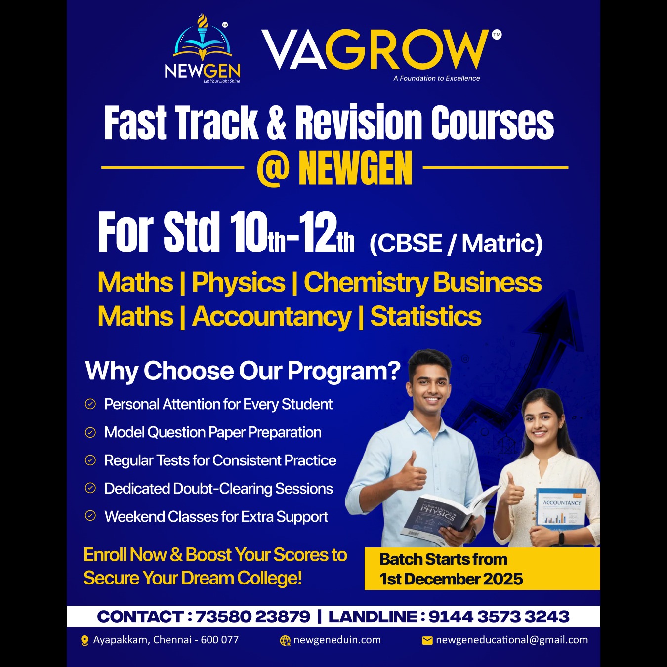 🔥 Ready to boost your board exam scores? Join NEWGEN’s Fast Track & Revision Courses and master every subject with expert guidance! 📞 Call: 73580 23879 | 9144 3573 243 📆 Batch starts 1st Dec 2025 — Limited seats. Book NOW!