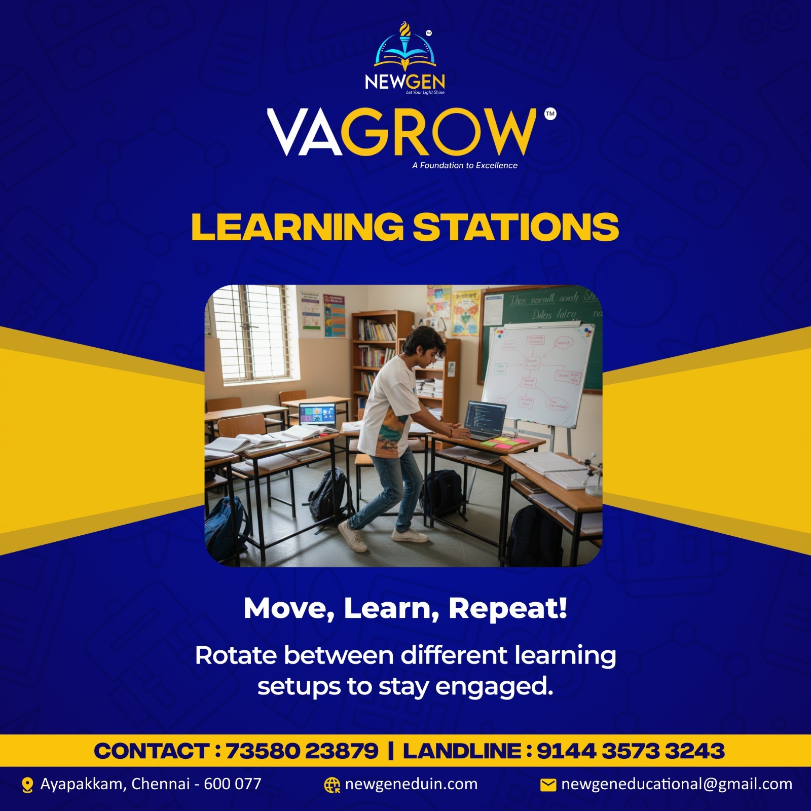 We offer comprehensive coaching to help students achieve academic excellence and prepare for competitive exams like NEET and JEE. Our programs are designed to build strong foundations, boost confidence, and unlock each studentβs full potential. π Our Courses πΉ Foundation Program (4th to 8th Std) Strengthen core concepts in subjects like Math, Science, and English with engaging, concept-based teaching. πΉ Advanced Coaching (9th to 12th Std) Score high in board exams (CBSE & State Board) through structured lessons, strategic test prep, and expert mentoring. πΉ NEET & JEE Preparation Crack medical and engineering entrance exams with advanced coaching, mock tests, and personalized guidance. π Why Choose NewGen? β Expert & Experienced Faculty β Small Batches for Personalized Attention β Affordable Fees with Maximum Value β Regular Tests & Performance Analysis β Individual Doubt-Clearing Sessions β Motivation & Career Guidance β Parent-Teacher Updates & Student Monitoring π Located in Ayapakkam, Chennai π Contact Us π Website: newgeneduin.com π Call: 73580 23879 βοΈ Landline: 91443 5733243 π Follow & Support Us Online! #NewgenEducationInstitute #NEETPreparation #JEEPreparation #CoachingCenter #AcademicSuccess #CBSE #StateBoard #TuitionClasses #9thStandard #10thStandard #11thStandard #12thStandard #StudentSupport #EducationInChennai #SchoolCoaching #StudySmart #KnowledgeIsPower